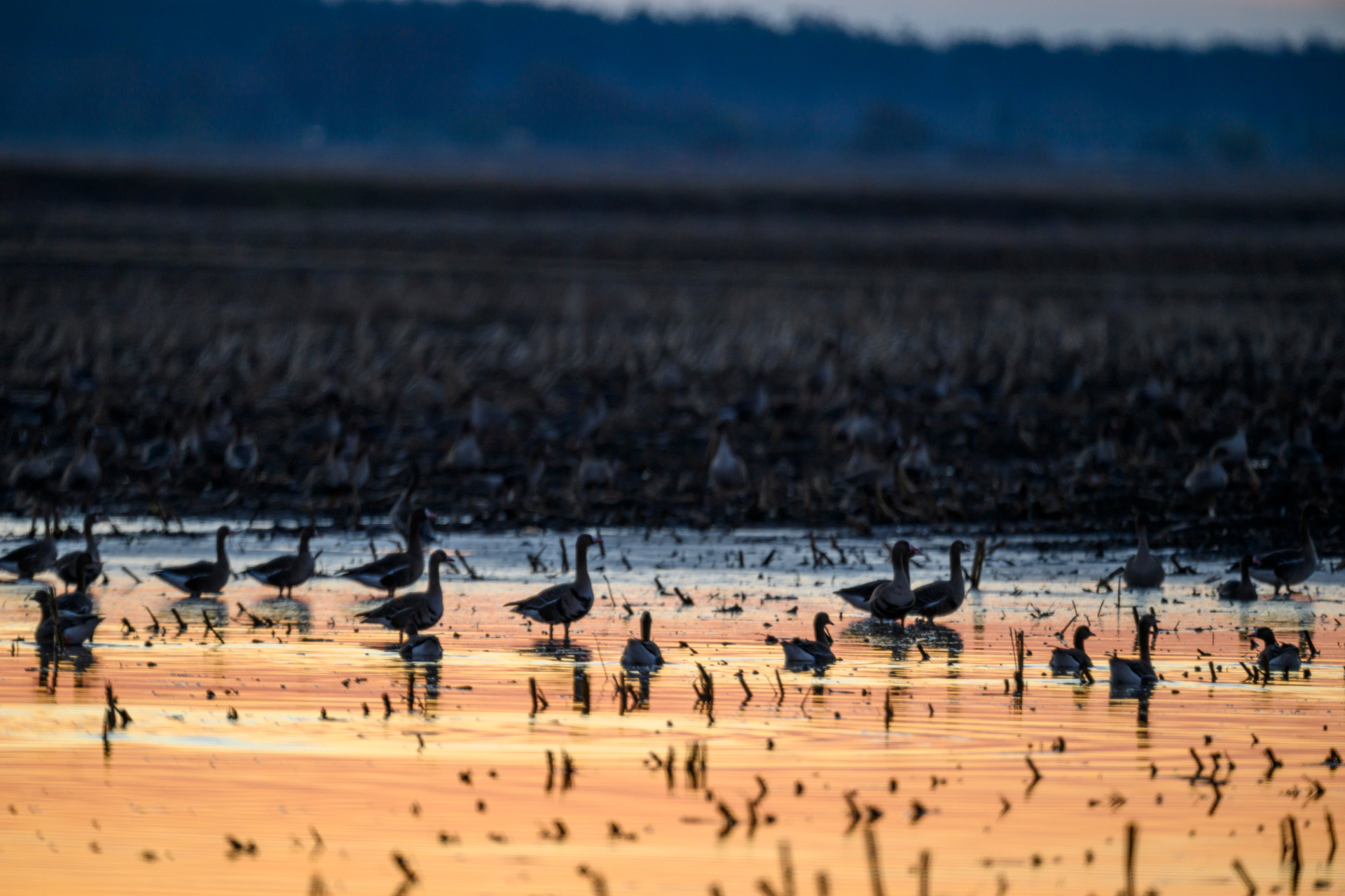 Сегодня встретил лебедей кликунов. Много гусей, за тысячу. Вода сильно поднялась, река вышла из берегов и подтопила...