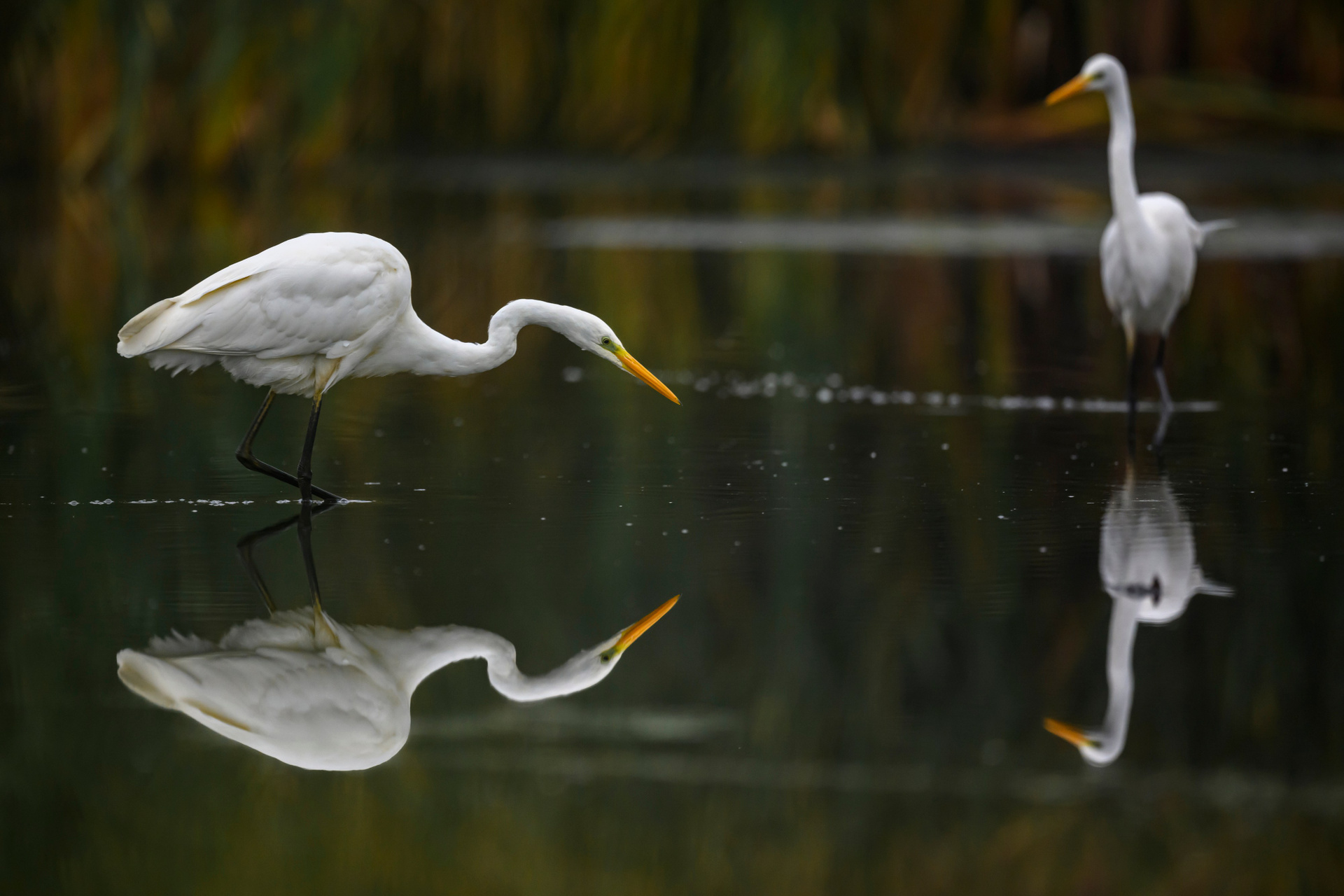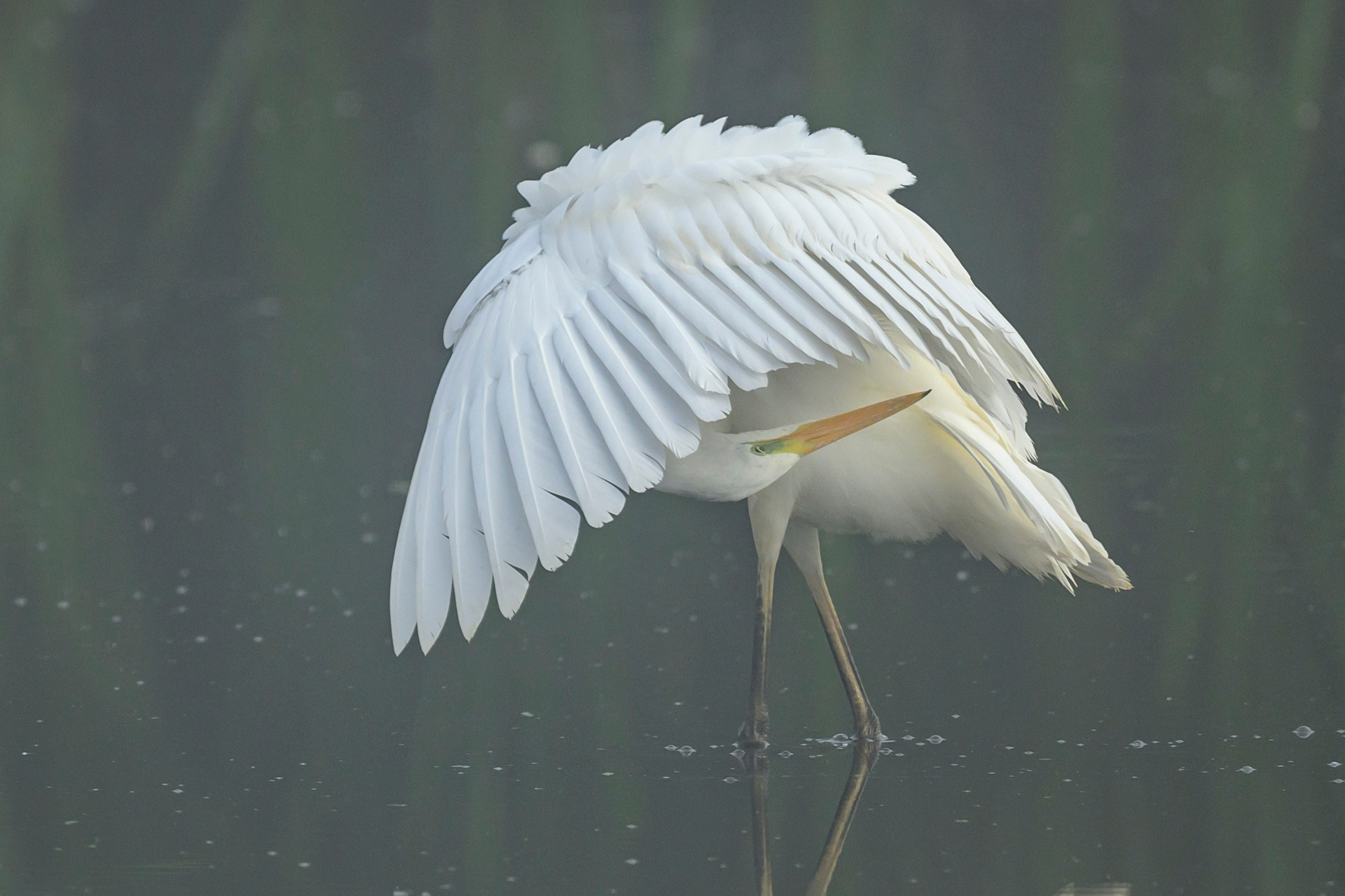 Цапля — одна из самых заметных птиц на воде. Она двигается неторопливо, почти осторожно, но каждое её движение выверено. В ней чувствуется грация хищника.