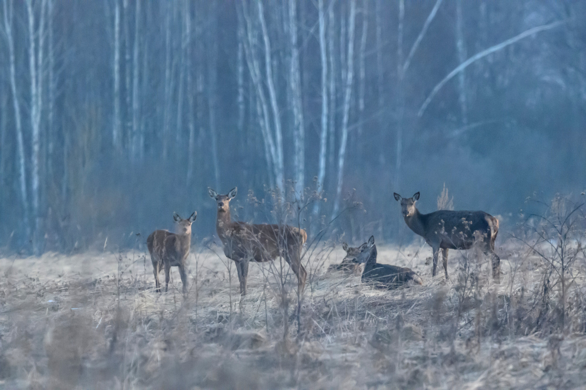 Утро в лесу. Лиса, лось, тетерева и одинокий гоголь